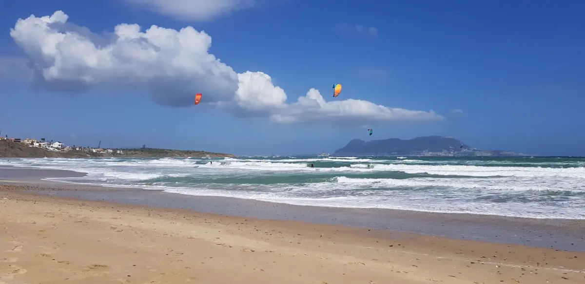 Une belle baie tout juste en face de Gibraltar avec le vrai avantage d'avoir du vent stable et surtout moins fort que par le Levante à Tarifa. Le spot offre des belles vagues assez régulieres. Et même une fontaine pour rincer le matos.