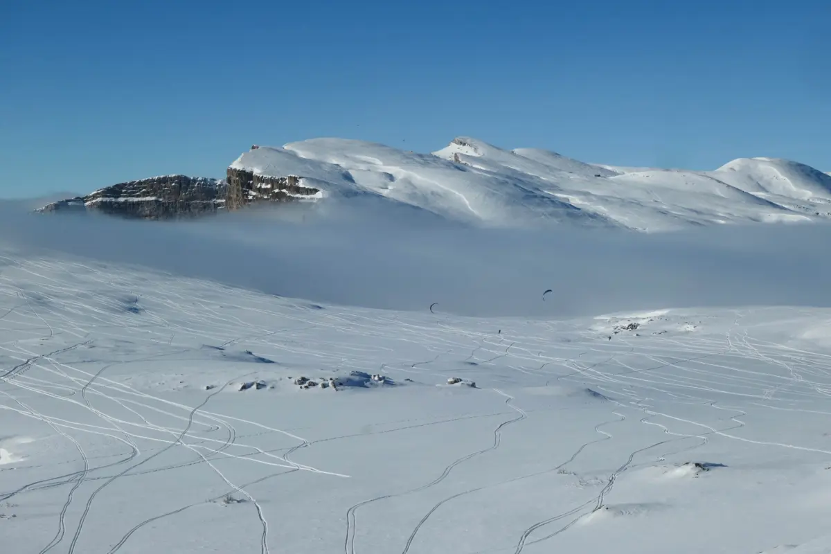 Spot incontournable dans le snowkite, le site de font d'urle est un terrain free ride environ 300 hectares dans un cadre insolite une aérologie de nord et de sud allimentée par la vallée du rhône Altitude: 1500m-1700m Surface: plateaux, combes,... Pas de marche d'approche sauf par vent de sud. Niveau: débutant à confirmé (se renseigner sur les zones conventionés FFVL et danger du site) Attention: présence de falaise au nord du plateau ainsi que scialet. Site conventionné FFVL